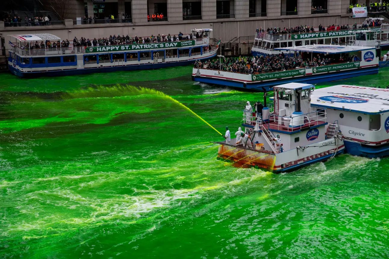 El río en Chicago teñido de verde