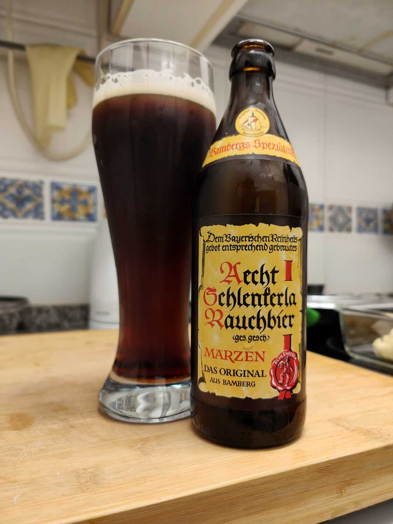 Schlenkerla está situada en la ciudad Bavara de Bamberg (Alemania), nombrada Patrimonio de la Humanidad por la UNESCO. Mencionada por primera vez en el año 1405, esta histórica taberna ha sido el lugar de procedencia durante siglos de Aecht Schlenkerla Rauchbier, la cerveza ahumada original. Siguiendo las mas antiguas tradiciones de elaboración y malteado, la cebada seleccionada es malteada y horneada con madera de haya. La malta ahumada, los lúpulos más finos de Baviera y el agua pura son los únicos ingredientes para esta cerveza única. Aecht Schlenkerla Rauchbier es una cerveza oscura de baja fermentación, con intenso aroma y sabor ahumado.